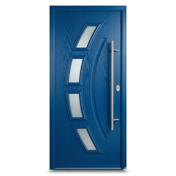 The Inox Barcelona composite door is bold, sculpted and unmistakably modern. Its combination of angled glazed panels and sweeping curved detailing creates movement across the surface, giving your entrance real architectural presence.