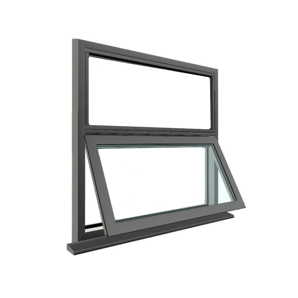 Buy Aluminium Windows UK choices often come down to how you want light and ventilation to behave in the room. This layout keeps the upper pane fixed for constant daylight, while the lower section opens outwards from the bottom edge, giving you airflow without the whole window moving.
