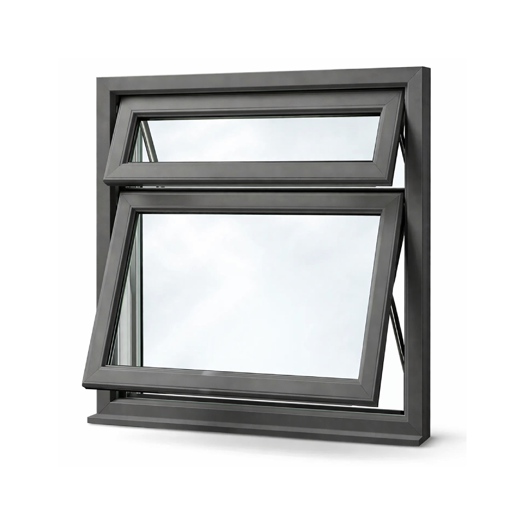 Buy Aluminium Windows UK decisions often come down to how ventilation is layered within the frame. This configuration combines a top-hung main sash with a separate overhead vent, allowing airflow to be adjusted without relying on a single opening point.