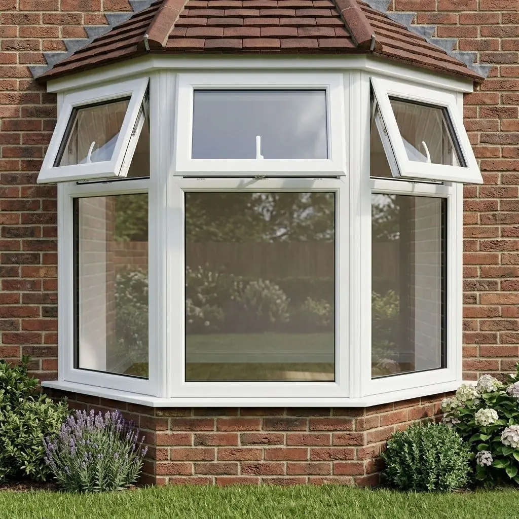 Unlike fixed-only uPVC bay windows, this layout gives you flexibility. Each vent opens outward from the bottom while remaining secure and subtle in appearance. The lower sections stay fixed, preserving the structural strength and clean lines of the frame.