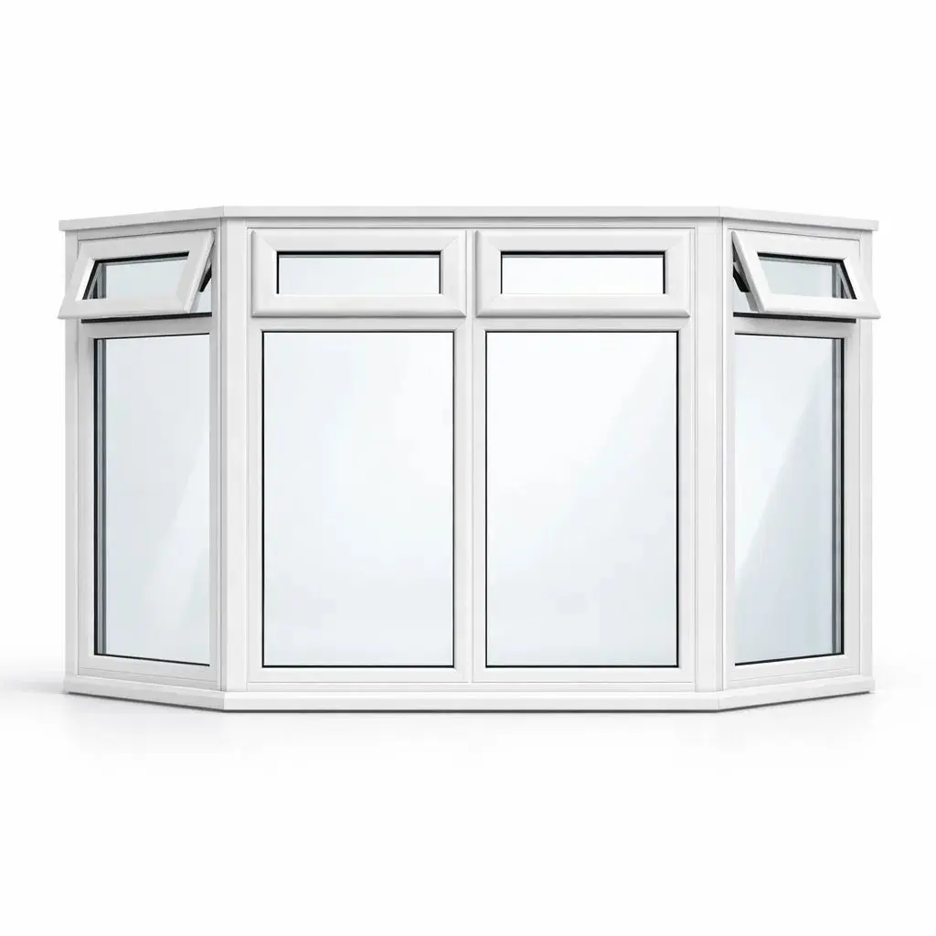 If you’re working with a wider opening and want consistent ventilation across the entire bay, this four-panel UPVC bay window configuration does the job properly.