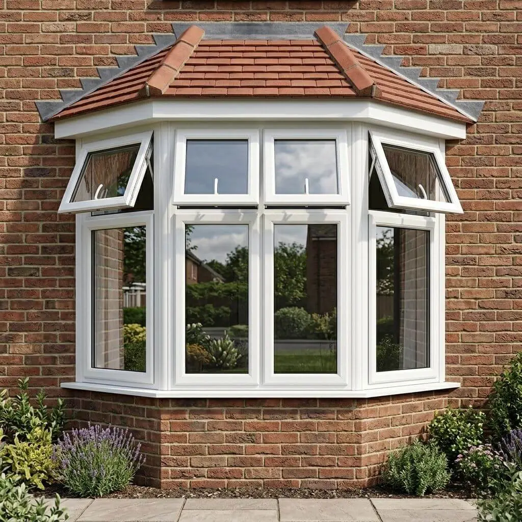 Compared to standard flat uPVC windows, a four-panel bay immediately adds depth to the exterior and increases the amount of daylight entering the room. Adding vents to all panels makes it particularly suitable for larger living spaces where airflow matters.