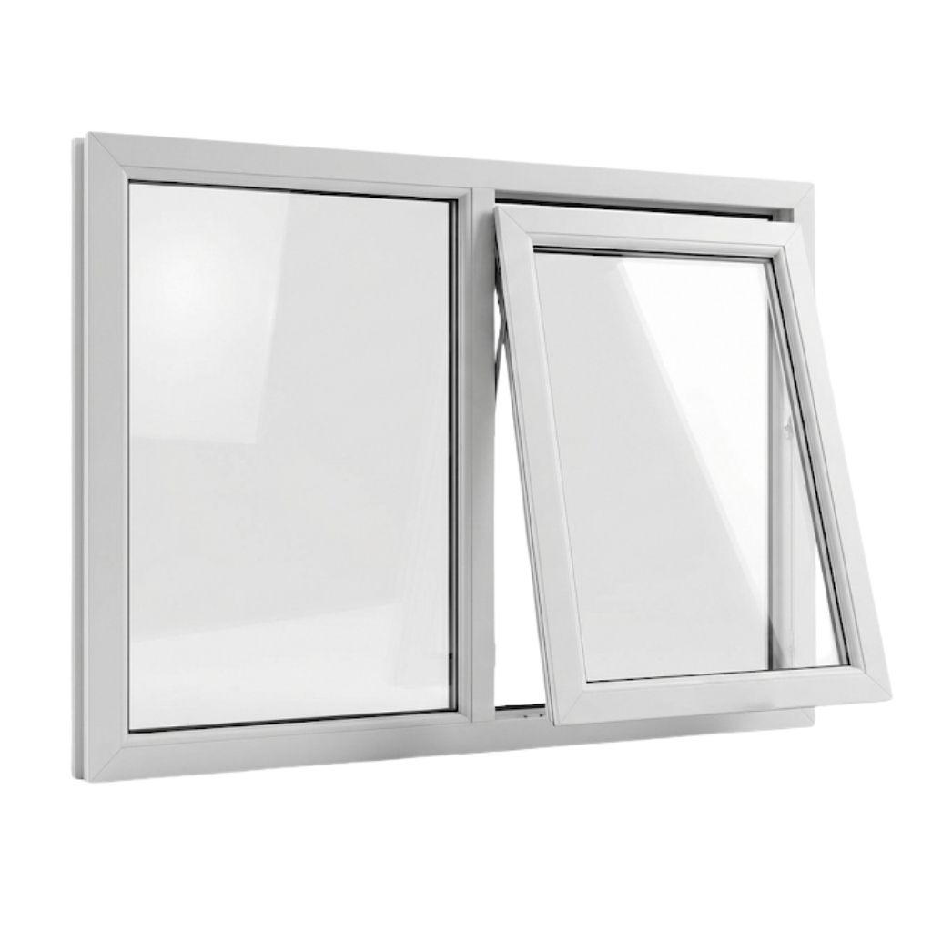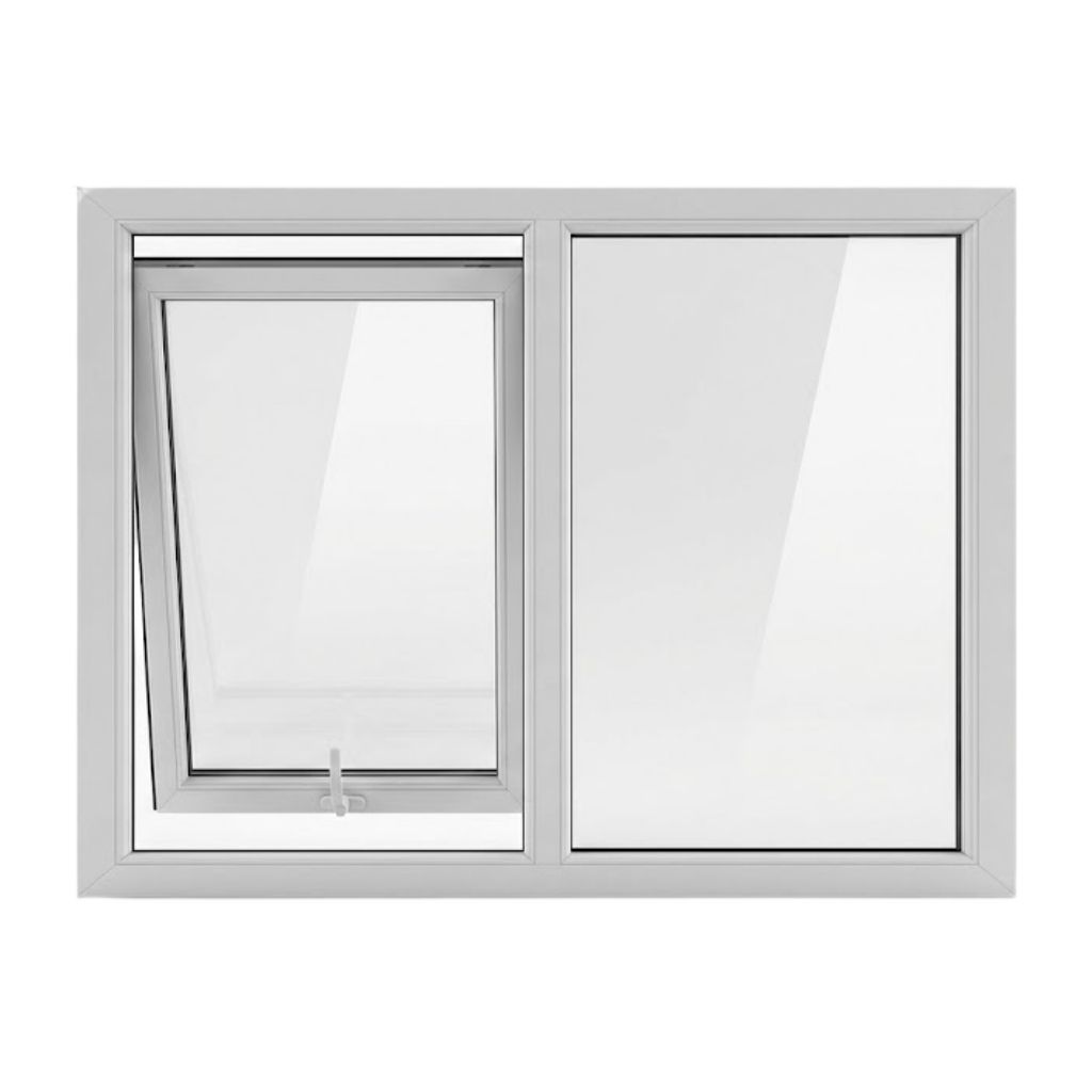 The top-hung casement is hinged at the top and opens outward from the bottom, which makes it ideal for steady airflow without fully opening the window. Because the opening is at the bottom only, it helps keep rain out while still allowing fresh air in. The fixed panel next to it stays fully closed, adding stability and helping improve overall energy efficiency.