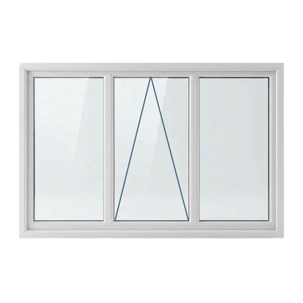 This uPVC casement window in a fixed, bottom-hung, fixed configuration is designed to provide controlled ventilation while maintaining a clean and balanced appearance. The window is manufactured as one complete unit with three vertical sections, where the centre panel is a full-height bottom-hung opening casement, and the two outer panels remain fully fixed.