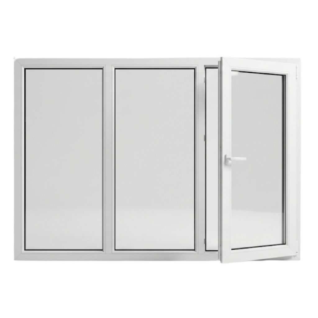 These uPVC windows can also be arranged the other way around, as side hung, double fixed again, with the side-hung window available in right-hand or left-hand opening. This gives even more flexibility, especially in rooms where furniture placement, access, or airflow direction matters.