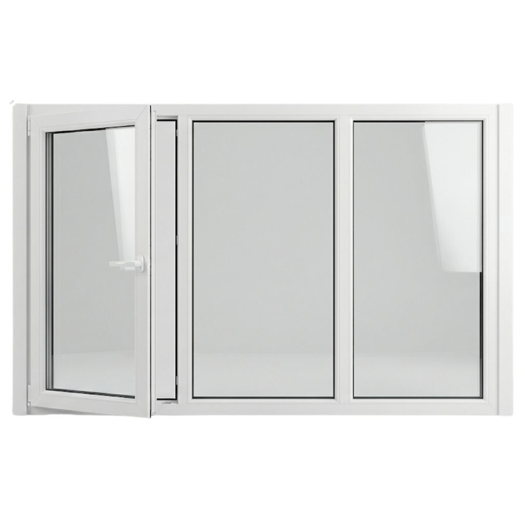 The window can be configured as fixed, fixed, side hung, where two panels remain fully fixed, and one panel opens for ventilation. The opening section is a side-hung casement, which can be made as right-hand or left-hand, depending on how the space is used and how the wall or room is designed. This allows the opening sash to be positioned exactly where it’s most convenient.