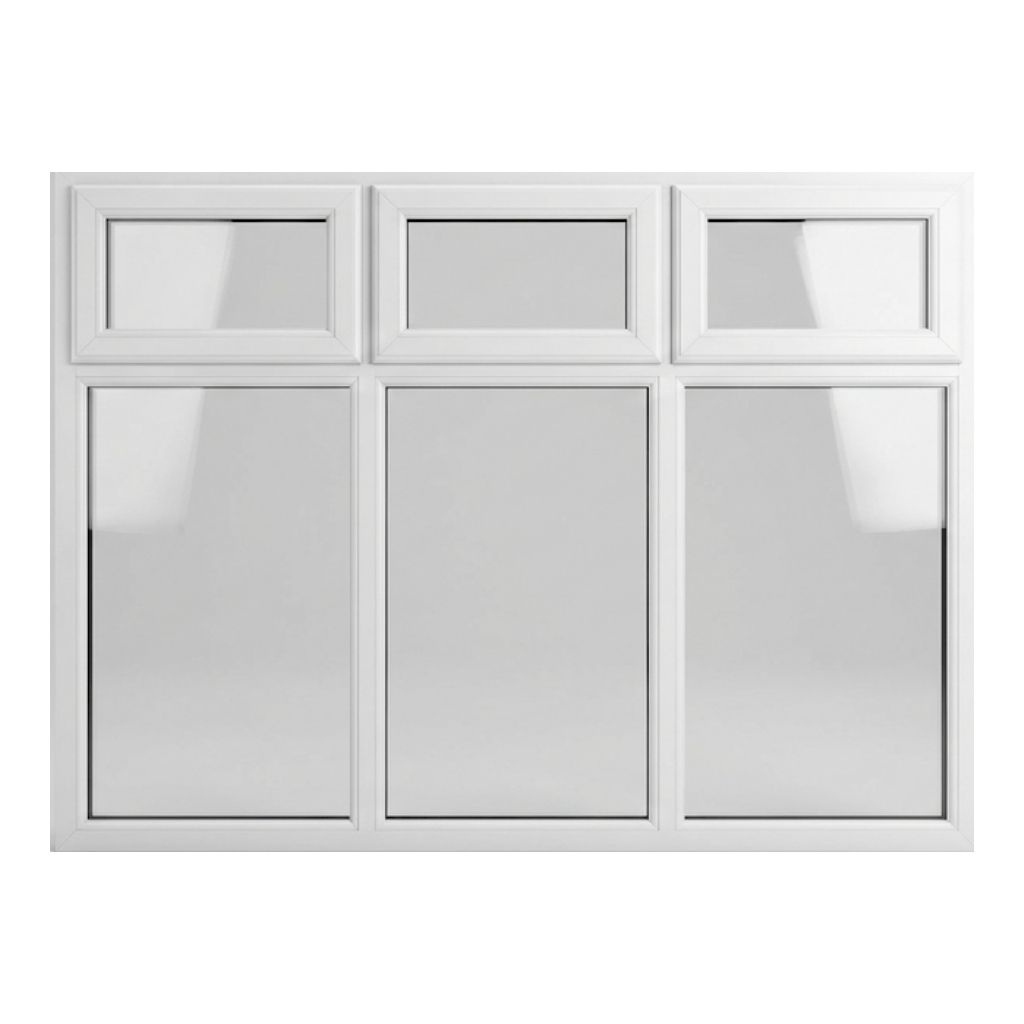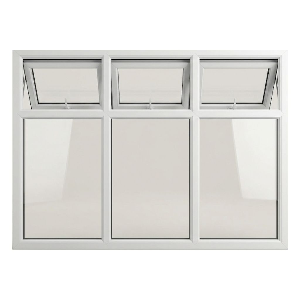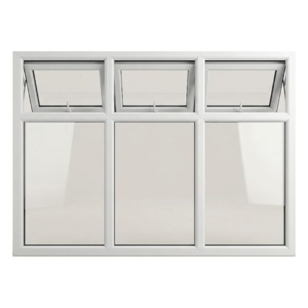 This uPVC casement window with three top vents and fixed glazing below is designed to provide regular ventilation while keeping a clean and well-balanced appearance. The window is manufactured as one complete unit with three vertical sections, each featuring a top-hung vent at the upper part and a fully fixed glazed panel underneath.