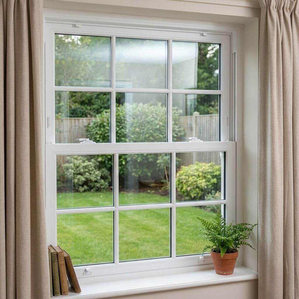 In practical terms, the vertical sliding system is simple and familiar, and the uPVC frame keeps maintenance to a minimum. There’s no painting to keep on top of; cleaning is straightforward, and the window keeps its appearance over time without much effort.