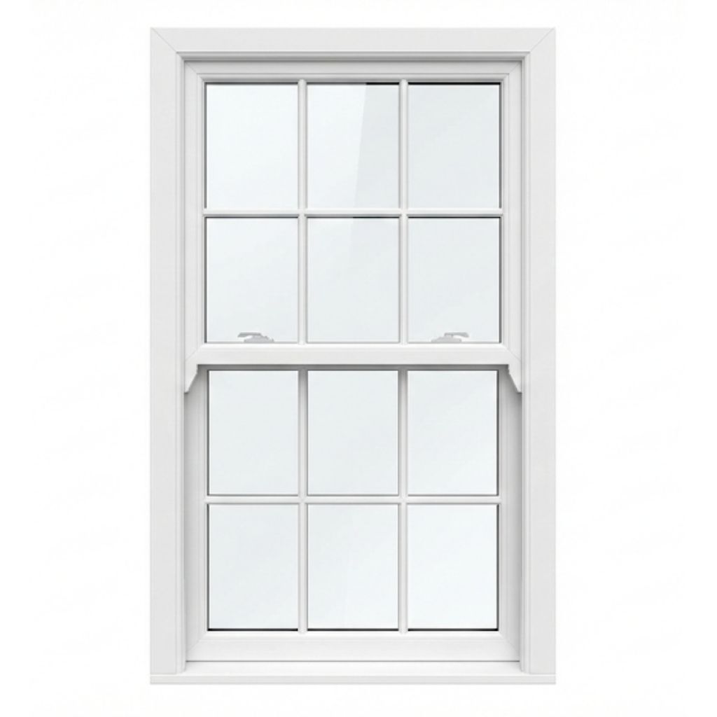 The window is made as one complete uPVC unit with a smooth outer frame and two vertically sliding sashes. As with a proper uPVC sliding sash window, the top sash sits slightly in front of the bottom one, giving the frame real depth rather than a flat, modern shortcut. It’s one of those details most people won’t consciously notice, but it’s exactly what makes the window feel right once it’s fitted.